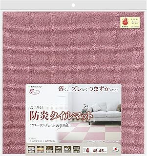 サンコー ズレない タイル カーペット ジョイント マット 防炎 45×45cm 同色4枚入 ローズ おくだけ吸着 KM-43(日本製)