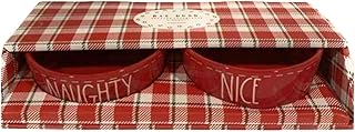 Rae Dunn NAUGHTY + NICE ペット 犬 猫 ボウル 2-4.75インチ - オールサイド レッド セラミック