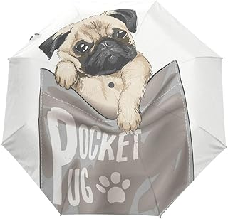 KaariDream 日傘 折りたたみ傘 ワンタッチ 自動開閉 完全遮光 UVカット 晴雨兼用 軽量 折り畳み レディース メンズ パグ いぬ 犬柄 ニマル 白 ホワイト かわいい 可愛い 丈夫 耐風 撥水 コンパクト おしゃれ かわいい 8本骨 遮熱 紫外線対策 日焼け止め プレゼント 贈り物