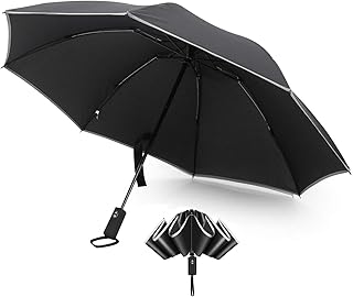 頑丈な8本骨 逆折り式 ビッグサイズ 折りたたみ傘 軽量 自動開閉 台風対応 晴雨兼用 逆折り 梅雨対策 超撥水 反射テープ 高強度グラスファイバー 直径105cm(ブラック