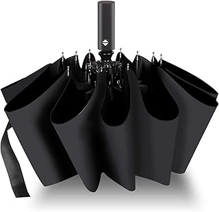 UVANTI 折りたたみ傘 ワンタッチ自動開閉 逆さ傘 Teflon加工 頑丈な10本骨 台風対応 耐風撥水 反射テープ おりたたみ傘 メンズ 梅雨対策 晴雨兼用 (ブラック)