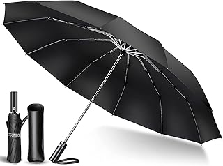 折りたたみ傘 ワンタッチ 自動開閉 大きい 頑丈な12本骨 メンズ 耐強風 超撥水 210T高強度グラスファイバー 梅雨対策 晴雨兼用 二重構造 ビッグサイズ 傘カバー付き (ブラック)