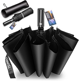 TSUNEO 折りたたみ傘 【2021年強化版 12本骨】 おりたたみ傘 メンズ 自動開閉 超大サイズ 折り畳み傘 大きい 超撥水 梅雨対策 台風対応 紫外線遮蔽 晴雨兼用 収納ポーチ付き (ブラック)