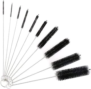 Kingsie カップブラシ 試験管ブラシ 細口瓶洗浄ブラシ ストロー 注ぎ口用ブラシ キーボード ロングチューブブラシ ナイロン 10本セット (ブラック)