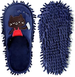モップスリッパ 【ネコ柄(ブラック)BK】お掃除スリッパ 室内履き ルームシューズ マイクロファイバー 猫 ねこキャラクター 洗える