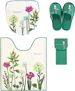 ロング トイレマット セット 4点 北欧 おしゃれ 日本製 (ロングトイレマット+共用フタカバー+スリッパ+ペーパーホルダーカバー)抗菌 防臭 耳長 花 モダン フラワー オカ ボタニカル グリーン 緑