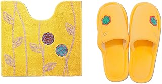 金運の黄色が鮮やか 北欧 おしゃれ トイレマット 2点 スリッパ 花 モダン フラワー オカ エトフ イエロー