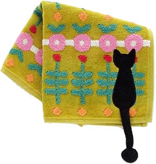 アツコマタノ 【Atsuko Matano】 タオルハンカチ (グリーン) <ひなたぼっこ> [綿100%] 婦人 ネコ しっぽ ハンドタオル 25cm 181003-0504-03