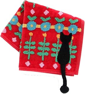 アツコマタノ 【Atsuko Matano】 タオルハンカチ (レッド) <ひなたぼっこ> [綿100%] 婦人 ネコ しっぽ ハンドタオル 25cm 181003-0504-61