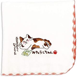 みたらしちゃん タオルハンカチ 赤(おやつ)ハンドタオル 綿100% 日本製 可愛い 猫 ねこ