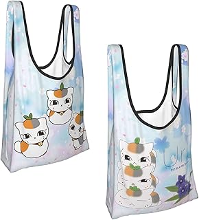 買い物バッグ 夏目友人帳 ニャンコ先生 猫 アニメ 買い物袋 2点セット エコバッグ 折りたたみ ショッピングバッグ コンビニバッグ 大容量収納 洗える