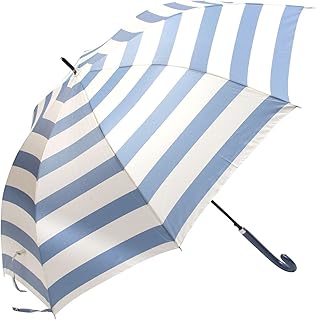 アテイン 婦人用 大判 ジャンプ傘 グラスファイバー骨使用 親骨65cm 先染め ボーダーボーダー ブルーグレー 2021